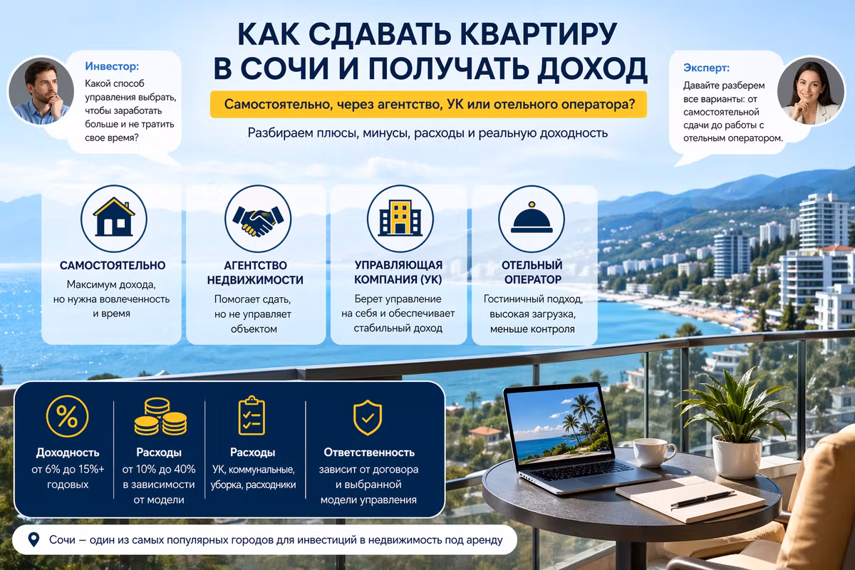 Если Вы покупаете недвижимость в Сочи под аренду, главный вопрос — не “где купить”, а как сдавать квартиру и кто будет управлять объектом.